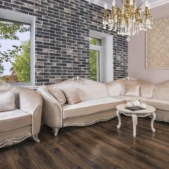 Мебель «Индиана» отличается выразительным рисунком натурального дерева, который одинаково хорошо впишется в классический и современный интерьер. В производстве этой модульной системы используются качественная ЛДСП и фурнитура немецких производителей. Декоративные накладки по углам и бронзовые подвижные ручки-скобки не только добавляют коллекции оригинальности, но и делают ее более практичной.