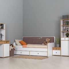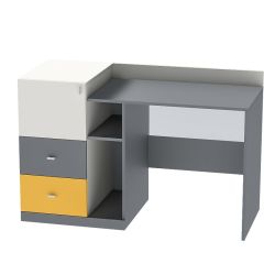 Столешницы столов и приставных тумб выполнены из МДФ толщиной 32 мм. Опоры столов, топы шкафов и подкатной тумбы выполнены из ЛДСП толщиной 32 мм, остальные элементы выполнены из ЛДСП 16 мм, задние стенки шкафов из ЛДСП.