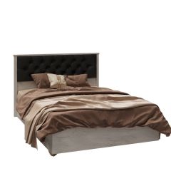 Спальня София СКР-2 Кровать с мягкой спинкой (сп/м 1400*2000мм), (б/основ.), к/з черный/ЛДСП Дуб крафт белый
