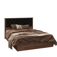 Спальня София СКР-2 Кровать с мягкой спинкой (сп/м 1400*2000мм), (б/основ.), к/з черный/ЛДСП Дуб крафт белый фото 1