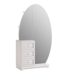 Состоит из: 3-х выдвижных ящиков, зеркала, стеллажа с полками, расположенный за зеркалом.