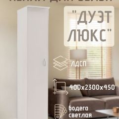 Пенал для белья Дуэт Люкс вы можете купить в интернет-магазине Meb96.ru по цене 5 100 руб. Только качественная мебель от Российских брендов. Если у вас возникли вопросы или вам нужна консультация по наличию, срокам доставки, ценам, обращайтесь любым удобным способом.